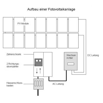 Rechts sehen Sie den üblichen Aufbau einer PV Anlage,